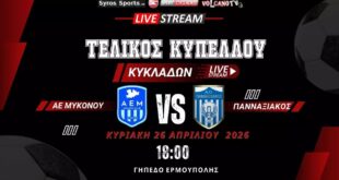 Ο 41ος τελικός του Κυπέλλου Κυκλάδων μεταξύ της Α.Ε Μυκόνου και του Πανναξιακού πλησιάζει, καθώς …