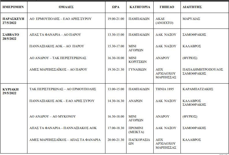 ΕΣΚΚ: Το πρόγραμμα των αγώνων μπάσκετ στις Κυκλάδες (27-29/5)