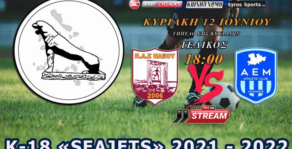 Παρακολουθήστε σε ζωντανή μετάδοση από το γήπεδο της ΕΠΣ Κυκλάδων στην Ερμούπολη της Σύρου τον τελικό της Κ18 μεταξύ του ΠΑΣ Νάξου και της ΑΕ Μυκόνου.