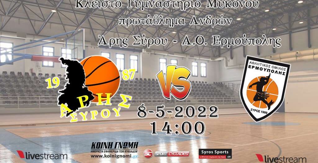 Παρακολουθήστε σε ζωντανή μετάδοση από το κλειστό γυμναστήριο της Μυκόνου τον αγώνα του ανδρικού πρωταθλήματος της ΕΣΚ Κυκλάδων μεταξύ του Άρη Σύρου και του ΑΟ Ερμούπολης.
