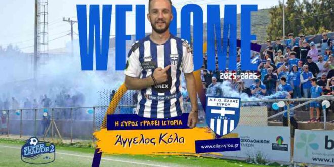 Η ΠΑΕ Ελλάς Σύρου ανακοινώνει την έναρξη της συνεργασίας της με τον Άγγελο Κόλα, ενισχύοντας ακόμη περισσότερο το ρόστερ της ενόψει της νέας αγωνιστικής περιόδου.