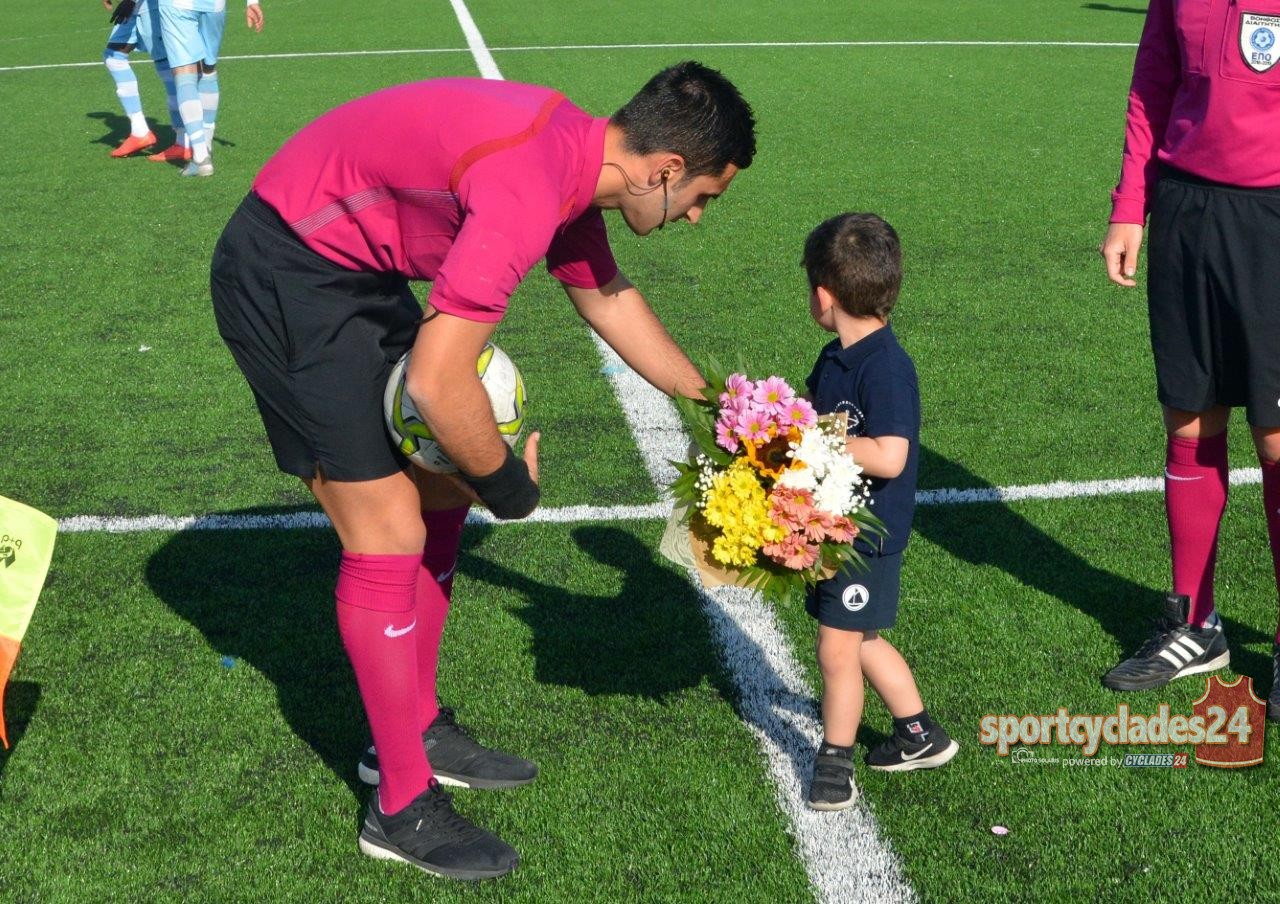 O Αντώνης Καλόγερας ήταν ο 4ος διαιτητής της αναμέτρησης  ανάμεσα στην Άνω Μερά και τον Πανναξιάκο και ως είθισται παρακολουθούσε τον αγώνα από το κέντρο του γηπέδου. Στην είσοδο όμως των ομάδων ,ένας άλλος Καλόγερας ακολούθησε το διαιτητικό τρίο στο γήπεδο. Ήταν ο νεαρός Γιώργος, γιος του διαιτητή που τον καμάρωνε από μακριά να μπαίνει με τον Στέφανο Κουμπαράκη στον αγωνιστικό χώρο και να κλέβει την παράσταση. Με τέτοιες παραστάσεις να μη μας φανεί παράξενο να δούμε κάποια στιγμή τον μικρό, να ακολουθεί τα βήματα του πατέρα του. Πως το λέει η παροιμία «το μήλο πέφτει κάτω από…»
