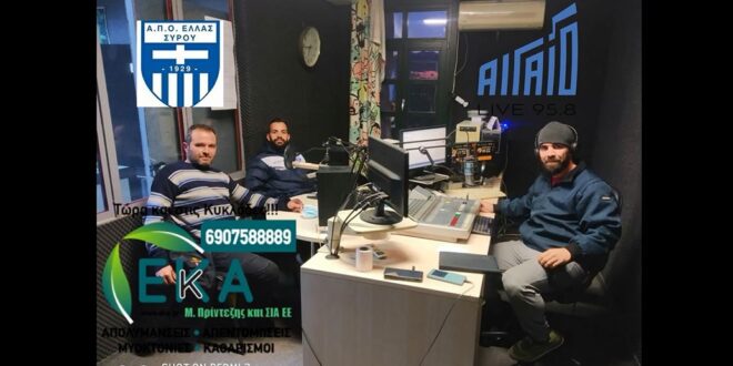 Καλεσμένος της αθλητικής εκπομπής του Αιγαίο LIVE 95.8 «Στο VAR» ήταν ο Κυριάκος Μανουδάκης. Ο αρχηγός της Ελλάς Σύρου μίλησε για το φετινό πρωτάθλημα, την ομάδα του, τον Α.Ο Σύρου, τον Πάγο. Ποιον θεωρεί καλύτερο προπονητή από αυτούς που έχει συνεργαστεί; Τι απάντησε σε ερώτηση για τους χρηματοδότες της ομάδας του Νίκο Ζάβρα και Άκη Πύργο. Ποιον θεωρεί καλύτερο πρόεδρο σε ερώτηση που έγινε από ακροατή;