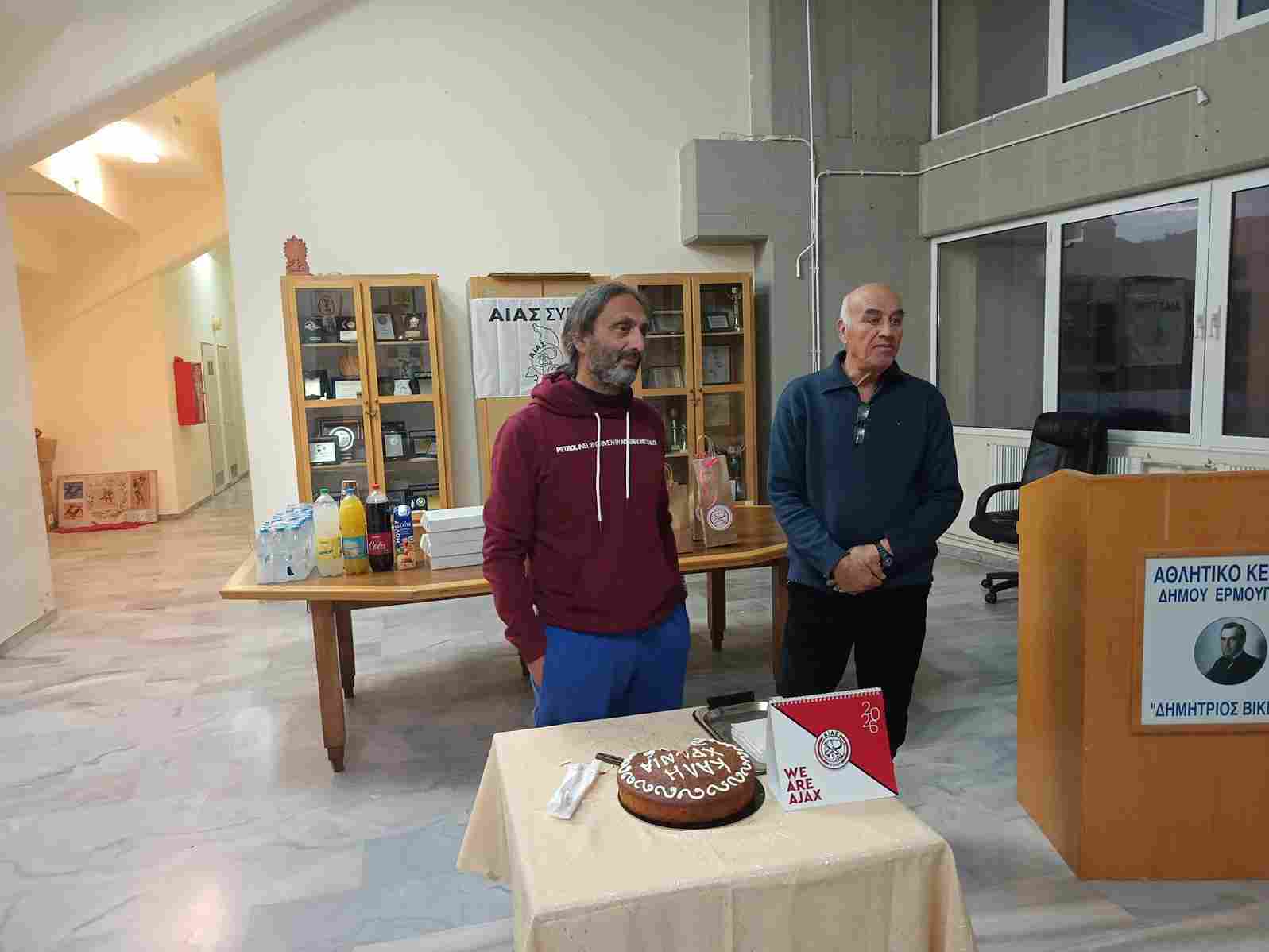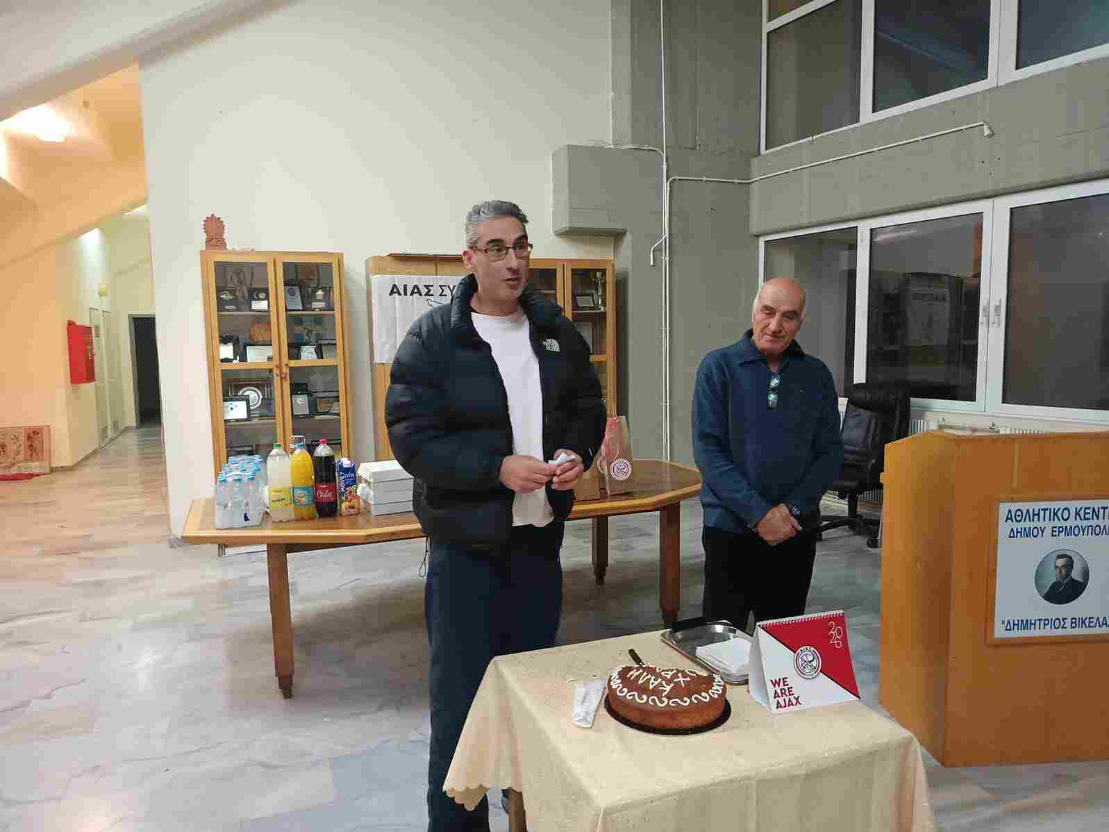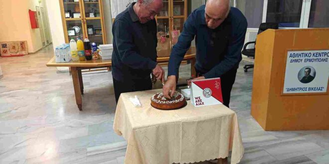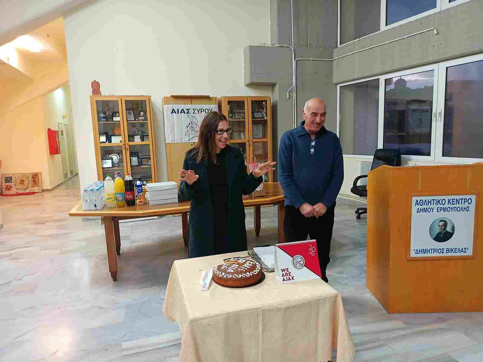Στο φουαγιέ του Κολυμβητηρίου Δ. Βικέλας έκοψε την πίτα του το τμήμα κολύμβησης του Αίαντα Σύρου. Μέσα σε γιορτινή ατμόσφαιρα, οι αθλητές του Αίαντα, οι προπονητές (Δρακάκης-Κούτρα), ο πρόεδρος του συλλόγου Γιάννης Σκλαβούνος και ο επικεφαλής του τμήματος Κολύμβησης Δημήτρης Γρυπάρης ευχήθηκαν σε όλους χρόνια πολλά. Παράλληλα ο Δημήτρης Γρυπάρης έκανε μια ιδιαίτερη αναφορά στους χορηγούς που βοήθησαν, αλλά και το Κολυμβητήριο που επιβάλλεται να φτιαχτεί για το καλό των παιδιών.