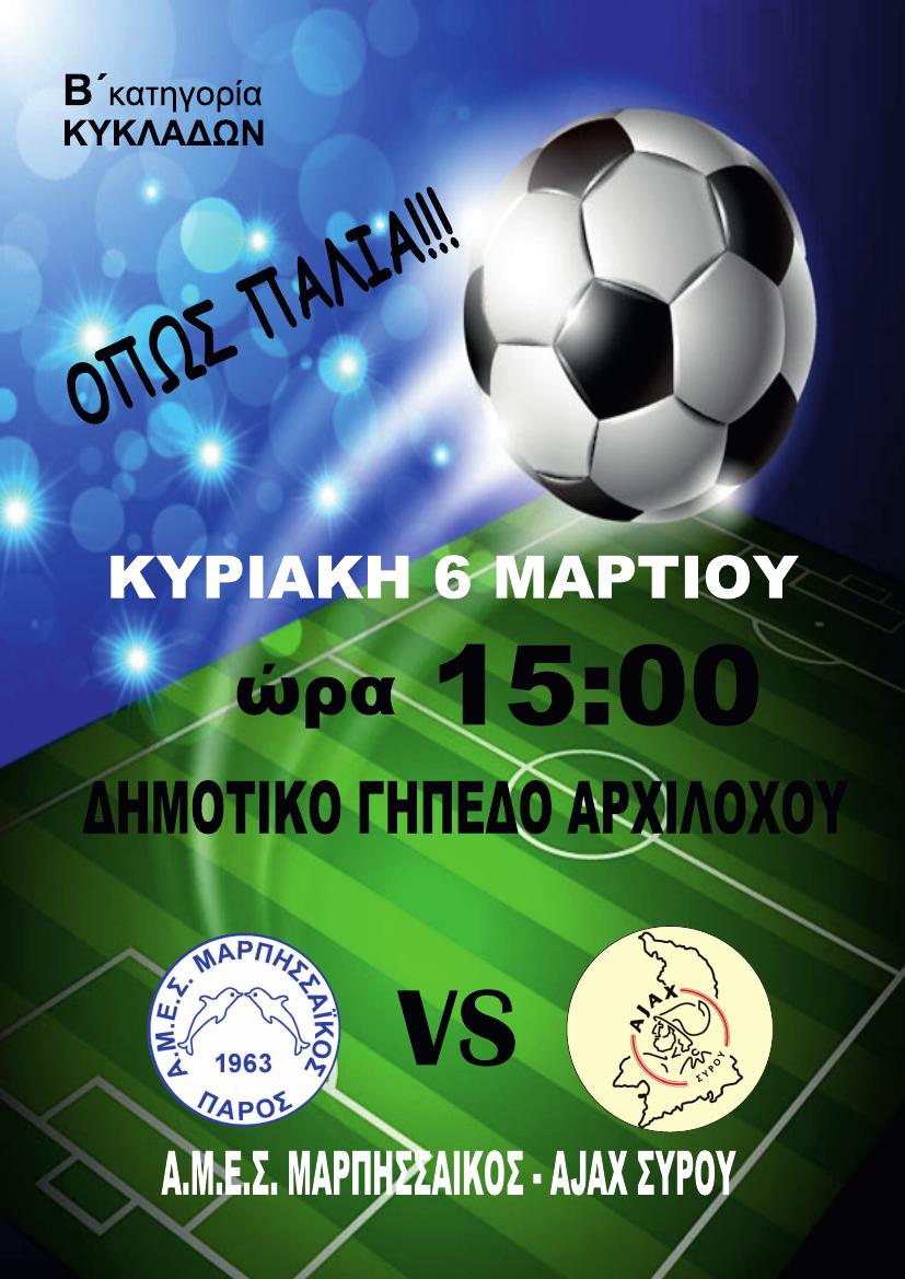 Κυριακή 06/03/2016 Δημοτικό γήπεδο Αρχιλόχου ώρα 15:00