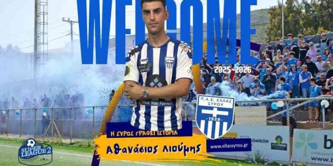Η ΕΛΛΑΣ ΣΥΡΟΥ καλωσορίζει στην οικογένειά της τον 23χρονο σέντερ φορ Θανάση Λιούμη, ο οποίος μέχρι πρότινος αγωνιζόταν στο Διαγόρα Ρόδου