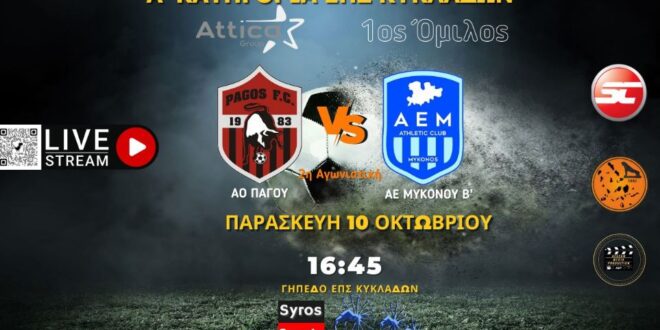 ΕΠΣ Κυκλάδων: Το πρόγραμμα και οι διαιτητές των αγώνων (10-12/10) Α ΚΑΤΗΓΟΡΙΑ ATTICA GROUP – …