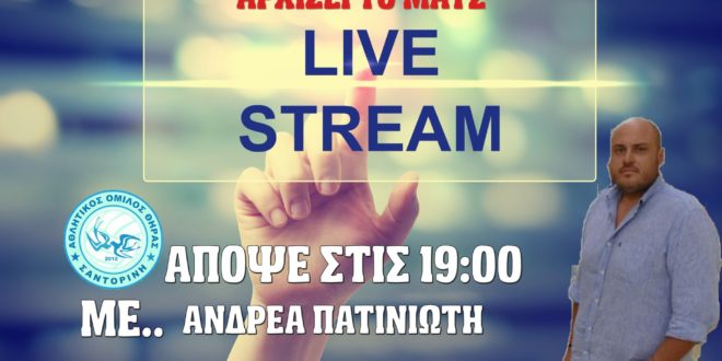 Συνεχίζονται οι καθημερινές διαδικτυακές εκπομπές από όλες τις συνεργαζόμενες ιστοσελίδες των Κυκλάδων. Απόψε στο “Αρχίζει το Ματς” καλεσμένος θα είναι ο αντιπρόεδρος του ΑΟ Θήρας και ταμίας της Ένωσης Ξενοδόχων Σαντορίνης Αντρέας Πατηνιώτης.