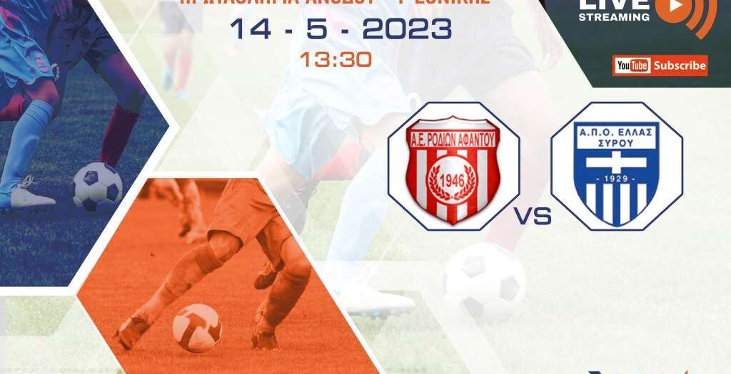 Παρακολουθήστε σήμερα στις 13.30  σε ζωντανή μετάδοση από τη Ρόδο τον αγώνα για τα μπαράζ ανόδου στη Γ΄Εθνική μεταξύ του ΑΕΡ Αφάντου και της Ελλάς Σύρου σε παραγωγή του xxsports…