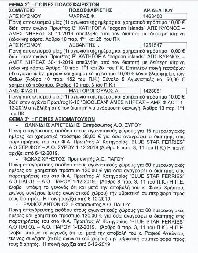 Δείτε τις ποινές που επέβαλε η πειθαρχική επιτροπή της ΕΠΣ Κυκλάδων για τους αγώνες της προηγούμενης εβδομάδας.