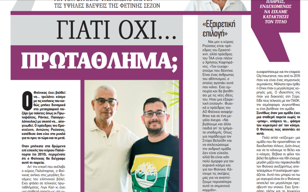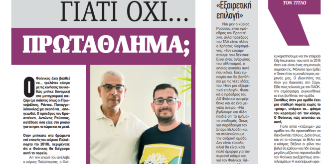 Ο Φοίνικας έχει βαλθεί να… τρελάνει κόσμο με τις κινήσεις του καθώς μπήκε δυναμικά στο μεταγραφικό παζάρι (με παίκτες όπως οι Πρωτοψάλτης, Ράντκε, Παπαγγελόπουλος) με σκοπό να απογειωθεί. Ο πρόεδρος του ερασιτέχνη, Αντώνης Ρούσσος κατέθεσε όσα είχε στο μυαλό του για το πριν το τώρα και το μετά.