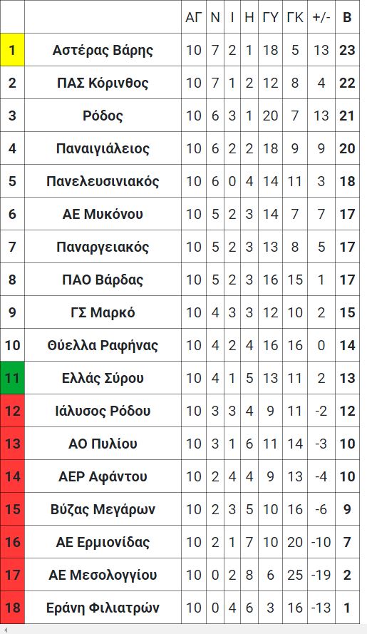Γ Εθνική: Αποτελέσματα 10ης αγωνιστικής-Βαθμολογία