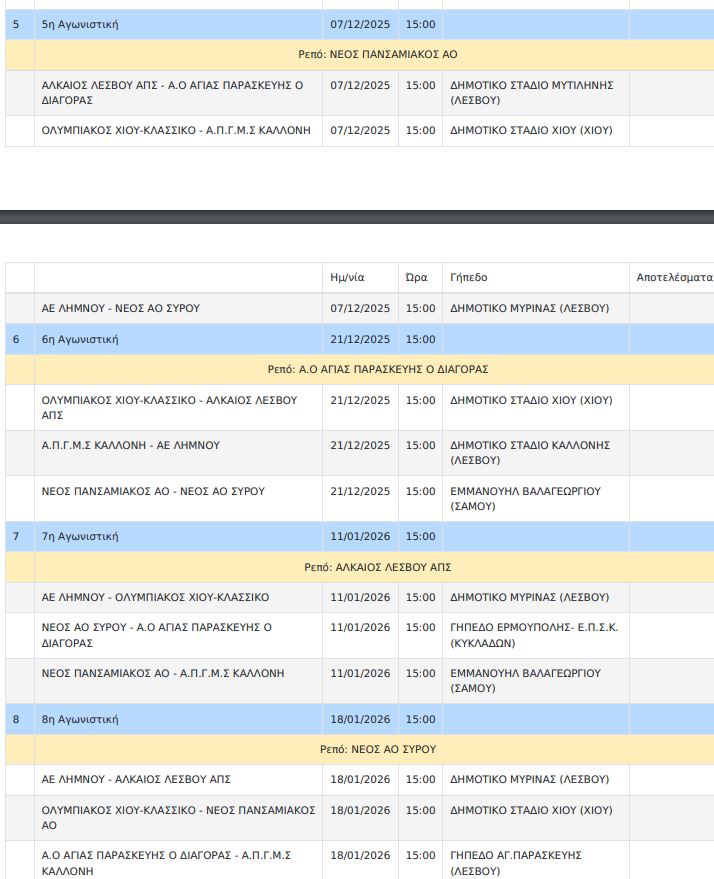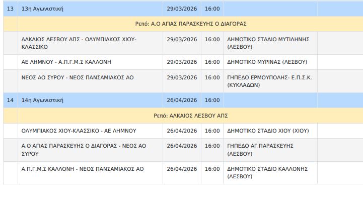 Δείτε το πρόγραμμα του 7ου ομίλου όπως αυτό ανακοινώθηκε από την ΕΠΟ.