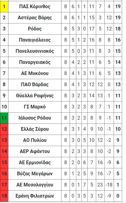 Γ Εθνική: Τα σημερινά αποτελέσματα και η βαθμολογία