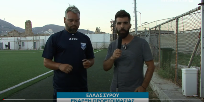 Ο Νίκος Βουτσίνος μίλησε στην κάμερα των συνεργαζόμενων σάιτ στο τέλος της πρώτης προπόνησης της Ελλάς Σύρου.