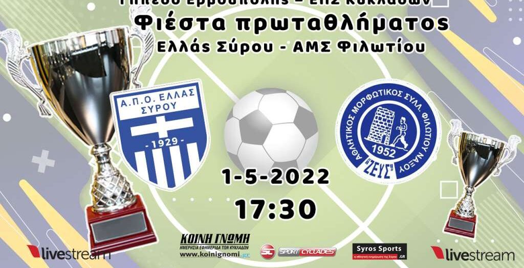 Ελλάς Σύρου – ΑΜΣ Φιλωτίου Live Streaming η Φιέστα – απονομή πρωταθλήματος