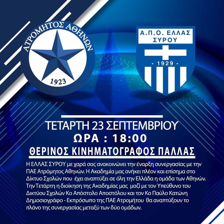 Ελλάς Σύρου-Ατρόμητος: Σήμερα η παρουσίαση από τον Απόστολο Αποστόλου
