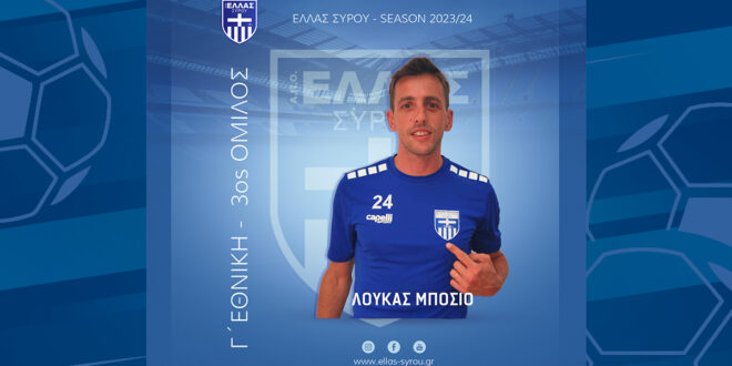 Το Δ.Σ του Α.Π.Ο Ελλάς Σύρου ανακοινώνει την έναρξη της συνεργασίας με τον ποδοσφαιριστή Λούκας Μπόσιο.