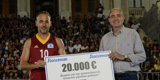 Κατά τη διάρκεια του VIP League o Πάνος Κωνσταντόπουλος, Vice President της Stoiximan, παρέδωσε στο δήμαρχο Σύρου-Ερμούπολης, Νίκο Λειβαδάρα, επιταγή για την ανακατασκευή του ανοικτού γηπέδου μπάσκετ Πάγου Σύρου ευγενικής χορηγίας της Stoiximan!