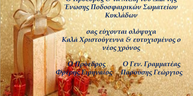 Οι ευχές της ΕΠΣ Κυκλάδων ενόψει των εορτών…