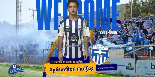 Η Ελλάς Σύρου ανακοινώνει την απόκτηση του ταλαντούχου μεσοεπιθετικού Χρύσανθου Γκέζου.
