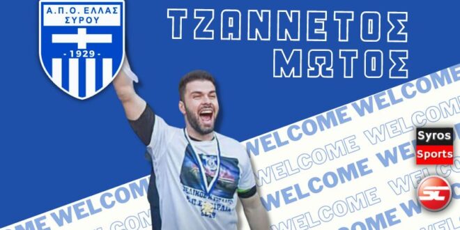 Το διοικητικό συμβούλιο του Α.Π.Ο Ελλάς Σύρου ανακοινώνει την έναρξη της συνεργασίας με τον τερματοφύλακα Τζαννέτο Μώτο. Μετά από 14 χρόνια στις ομάδες της Αθήνας, ο έμπειρος πλέον τερματοφύλακας έρχεται στην ομάδα μας για να την ενισχύσει στην προσπάθεια που θα κάνει και φέτος για την άνοδο στην Γ Εθνική. Σε νεαρή ηλικία ο Τζαννέτος Μώτος αγωνίστηκε στους Αστέρα Σύρου, Α.Ο Σύρου και Ελλάς (στην Δ Εθνική). Μετέπειτα μετακόμισε στην Αθήνα όπου φόρεσε με καλές παρουσίες τις φανέλες ομάδων όπως:Χαϊδάρι (Γ και Δ Εθνική 2008-10), Αίαντας Σαλαμίνας (Δ Εθνική (2011-12), Περαμαϊκός Γ και Δ Εθνική (2012-14), Καραβάς 2015-19 (Άνοδος από Β τοπικό στην Γ Εθνική ως αρχηγός και κατάκτηση κυπέλλου Πειραιά 2018 απέναντι στον Εθνικό. Την περσινή σεζόν αγωνίστηκε με τα χρώματα του Φοίνικα Περιστερίου.