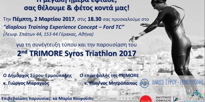 2 Μαρτίου στον Γέρακα η συνέντευξη τύπου του 2ου Trimore Syros Triathlon 2017.