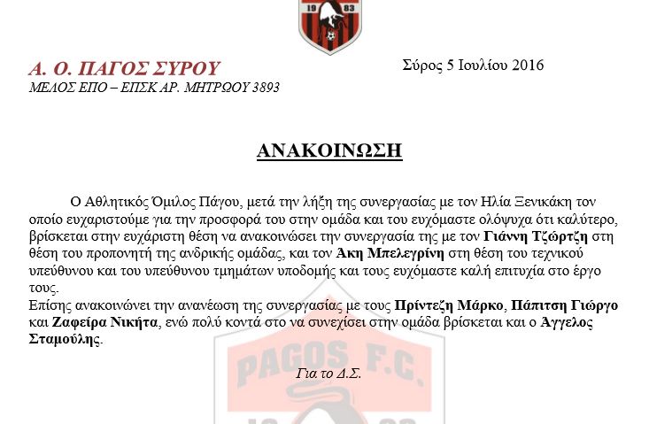 Η ανακοίνωση του Α.Ο Πάγου που επιβεβαιώνει το πρωινό μας ρεπορτάζ για τους Τζώρτζη, Μπελεγρίνη, Πρίντεζη, Πάπιτση και Ζαφείρα…