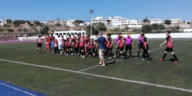 Τα γκολ της Συριανής ομάδας σημείωσαν οι Αγοραστός και Βλαχογιάννης στο 12΄ και 53΄, με την ομάδα της Σύρου να προηγείται 2-0 στο 53΄.Ωστόσο οι απουσίες της ομάδας, οδήγησαν τον Πάγο σε καθίζηση στο Β μέρος, με την ομάδα της Μήλου να σκοράρει 5 τέρματα με τους Μπάμπακαρ (60΄-72΄), Τόκα (66΄), Σάντα (75΄) και Στεφανάκη στο 84΄.