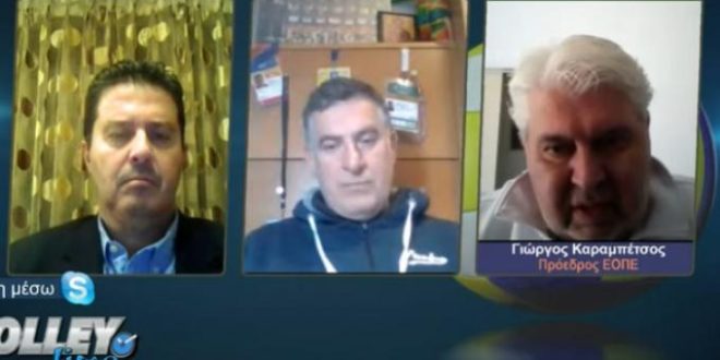 «Το βάρος όλο θα πέσει στην ομοσπονδία για να πάρει τις αποφάσεις. Είμαστε σε διαρκή επικοινωνία με τον αρμόδιο υπουργό. Επεξεργαζόμαστε την τροποποίηση των προκηρύξεων. Μόλις γίνει αυτό τότε θα ξέρουμε τι θα κάνουμε. Τα πάντα εξαρτώνται από τις αποφάσεις τις αρμόδιας επιτροπής και το πού θα φτάσει η κατάσταση με τον ιό. Πάνω που βγάλαμε το βόλεϊ από την εντατική, πρέπει να το ξαναβάλουμε εκεί. Η πρώτη μου σκέψη είναι τα πλέι οφ και τα πλέι άουτ. Αν γίνουν τα πλέι οφ και τα πλέι άουτ θα γίνουν σε μορφή final four» σημείωσε ο Γιώργος Καραμπέτσος στον Βασίλη Βέργη και τον Κώστα Ασημακόπουλο.