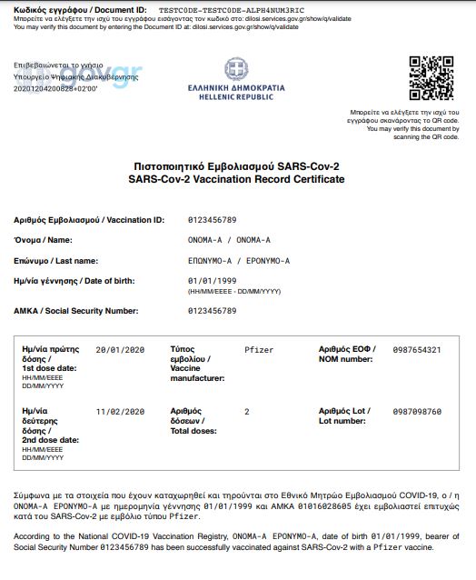Δείτε πως θα είναι το πιστοποιητικό εμβολιασμού το οποίο θα παίρνουν οι πολίτες μετά τη χορήγηση όλων των δόσεων.