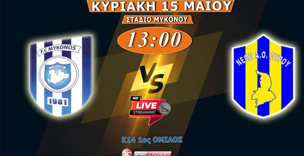 Παρακολουθήστε σε ζωντανή μετάδοση τον αγώνα της Κ14, ΑΟ Μυκόνου – Νέος ΑΟ Σύρου.