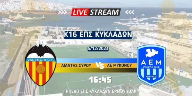 Κ16: Κανονιέρηδες Σύρου – ΑΕ Μυκόνου Live Streaming