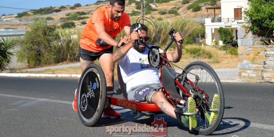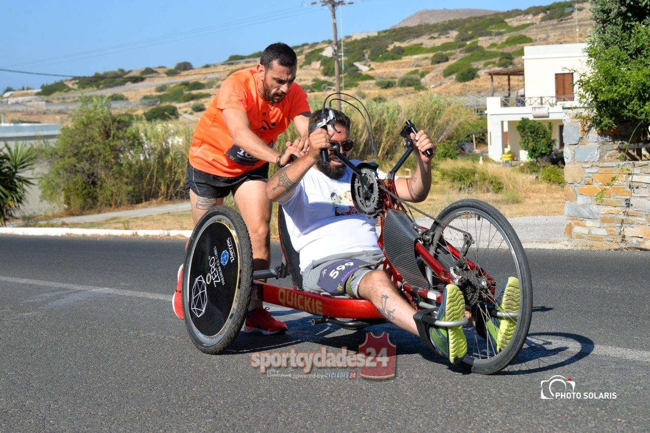 Στο περιθώριο λοιπόν όλης αυτής της φορτισμένης από συναισθήματα και ευαισθησία εκδήλωσης ήλθε να προστεθεί και η συμπεριφορά του συμπολίτη μας αθλητή και μέλους του Αθλητικού Πολιτιστικού Συλλόγου «Δρομείς Σύρου» Ισίδωρου Παλαμάρη που σε όλα τα ανηφορικά κομμάτια της μεγάλη διαδρομής των 13,5 χιλιομέτρων έσπρωχνε το αναπηρικό καροτσάκι του συναθλητή του Νίκου Ρούσσου βοηθώντας τον να ολοκληρώσει τον αγώνα αδιαφορώντας για την δική του προσωπική διάκριση.