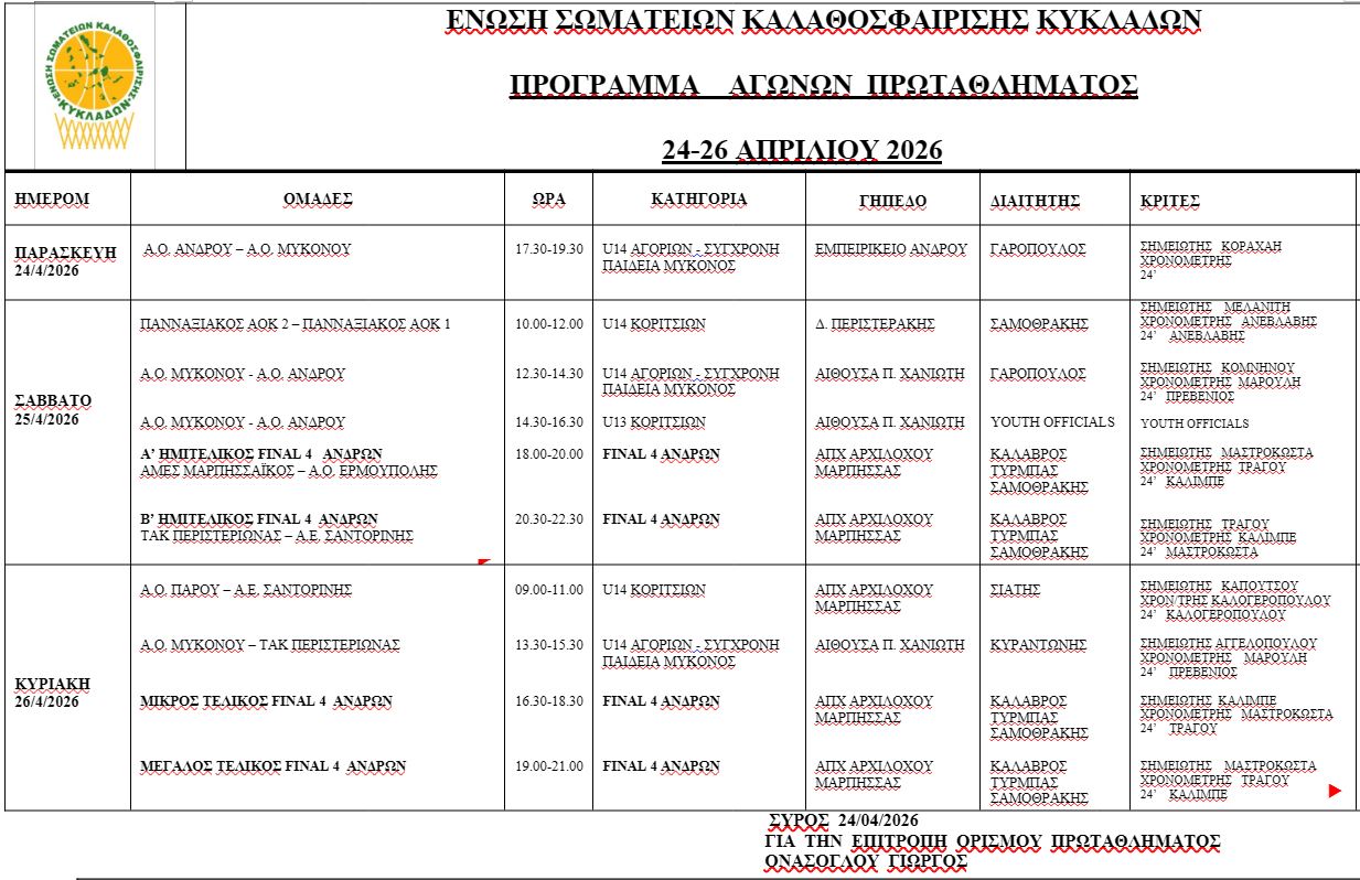 Μπάσκετ: Το πρόγραμμα αγώνων της ΕΣΚΚ (24-26/4)