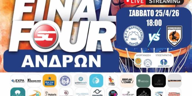 Παρακολουθήστε σε ζωντανή μετάδοση (25/4 | 18:00) από το κλειστό γυμναστήριο του Αρχίλοχου τον πρώτο ημιτελικό του Final – 4 Ανδρών της ΕΣΚ Κυκλάδων, Μαρπησσαϊκός – ΑΟ Ερμούπολης.