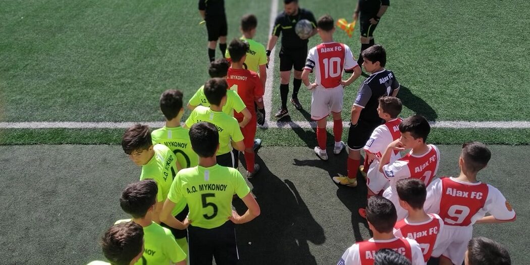 Παίζοντας κατά διαστήματα ωραίο ποδόσφαιρο το Κ14 του Άγιαξ επικράτησε σήμερα 6-2 του Α.Ο Μυκόνου 2 και βρίσκεται πλέον πολύ κοντά στο Final-4 της διοργάνωσης… Η ομάδα του Γιώργου Ρουσσου και Σίμου Ρηγούτσου πήρε σήμερα την 9η νίκη της στο φετινό πρωτάθλημα και πλέον την τελευταία αγωνιστική κόντρα στον ΠΑΣ Τήνου θα παίξει την πρόκριση στο Final-4 της διοργάνωσης.