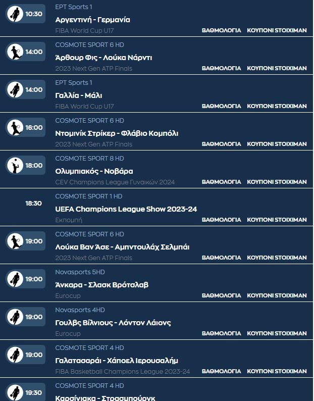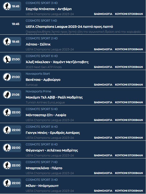 Οι αθλητικές μεταδόσεις της ημέρας (28/11)