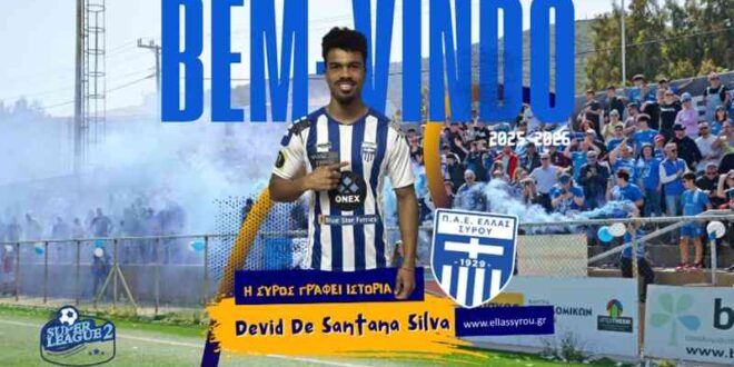 Η Ελλάς Σύρου ανακοινώνει την απόκτηση του 29χρονου Βραζιλιάνου σέντερ φορ Ντέβιντ ντε Σαντάνα Σίλβα (γεν. 28/3/1996), ο οποίος έρχεται να ενισχύσει την επιθετική μας γραμμή ενόψει της νέας σεζόν.
