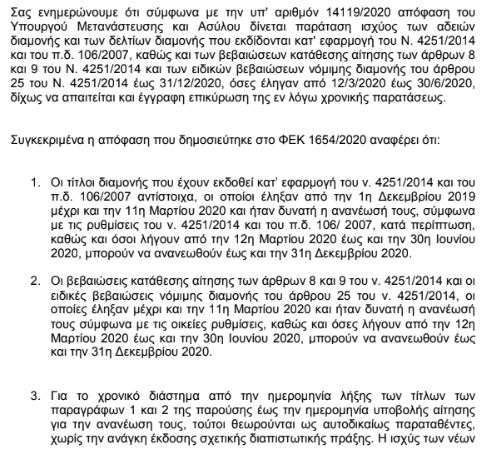 Η ΕΠΟ με έγγραφό της ενημερώνει τις ΕΠΣ και τα σωματεία για την απόφαση του Υπουργείου Μετανάστευσης να παρατείνει την παραμονή των αλλοδαπών παικτών μέχρι και 31 Δεκεμβρίου 2020.