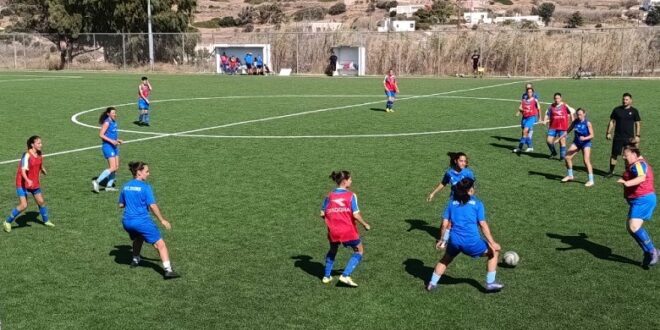 Φιλική αναμέτρηση πραγματοποίησαν οι γυναικείες ομάδες του Νέου ΑΟ Σύρου και την ΑΕ Μυκόνου την Κυριακή 7 Σεπτεμβρίου στο γήπεδο του Πάγου. Η ομάδα της Μυκόνου επικράτησε σε παιχνίδι που δεν κρατήθηκε σκορ. Δείτε φωτογραφίες: