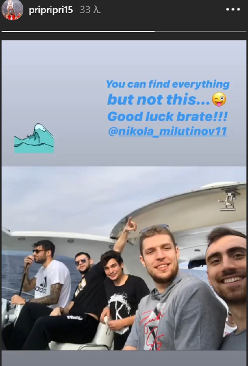 «Μπορείς να βρεις τα πάντα, αλλά όχι αυτό… Καλή τύχη αδερφέ Νίκολα Μιλουτίνοφ», ανέφερε στο Instagram ο διεθνής φόργουορντ.