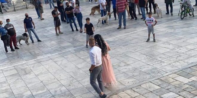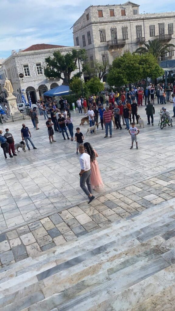 Ο κίπερ της ομάδας της Σύρου ανέβηκε τα σκαλιά του Δημαρχείου Σύρου, έχοντας στο πλευρό του, τη λαμπερή σύζυγό του.