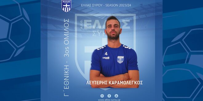 Το Δ.Σ του Α.Π.Ο Ελλάς Σύρου βρίσκεται στην ευχάριστη θέση να ανακοινώσει την έναρξη της συνεργασίας με τον ποδοσφαιριστή Λευτέρη Καραμολέγκο. Ο Συριανός ποδοσφαιριστής έχει περάσει στο παρελθόν ξανά από την ομάδα μας έχοντας κατακτήσει το πρωτάθλημα της Β Κατηγορίας Κυκλάδων, ενώ έχει αγωνιστεί στην ακαδημία του Νέου Α.Ο.Σ και στον Αίαντα Σύρου την περσινή χρονιά, κατακτώντας και εκεί το πρωτάθλημα της Β κατηγορίας. Μέσα στις επιτυχημένες σεζόν, ήταν η κατάκτηση της 3η θέσης στο Πανελλήνιο πρωτάθλημα προεπιλογής Εθνικών ομάδων με την Μικτή Κυκλάδων, όπου και ήταν από τους βασικούς συντελεστές αυτής της επιτυχίας.