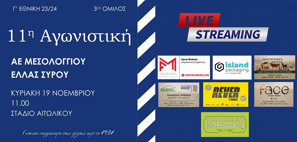 Ο αγώνας θα μεταδοθεί ζωντανά αύριο στις 11.00 προσφοράς των παρακάτω χορηγών.