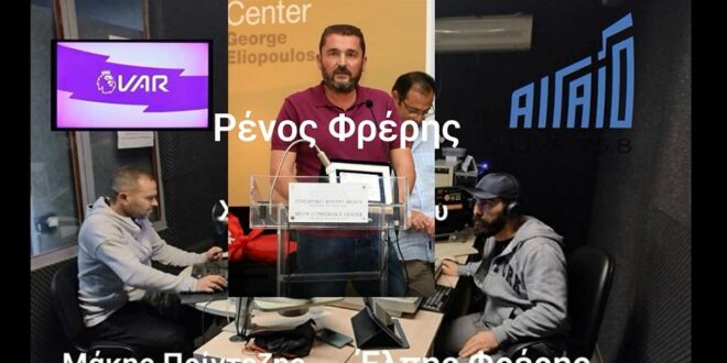 Ακούστε σήμερα στις 18.00 ζωντανά μέσα από το Syros-Sports.gr την αθλητική ραδιοφωνική εκπομπή του Αιγαίο FM «Στο VAR» με τους Έλπη Φρέρη και Μάκη Πρίντεζη..