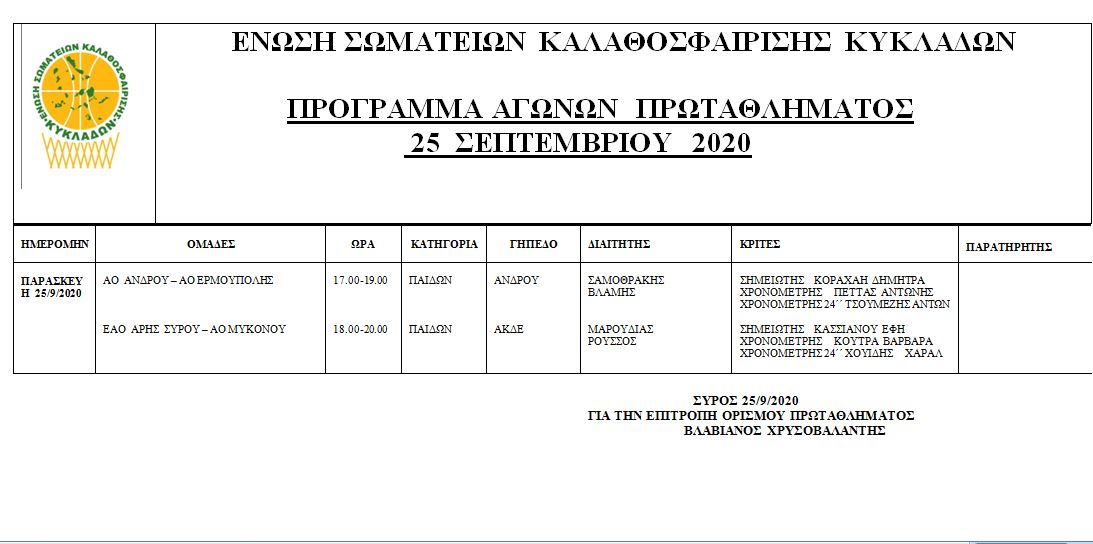 Το πρόγραμμα και οι διαιτητές της ΕΣΚ Κυκλάδων [25/9]