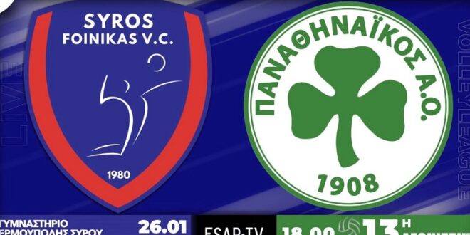 Για την 13η αγωνιστική της VOLLEY LEAGUE 🇬🇷 2024-25, ο Α.Ο. Φοίνικας Σύρου υποδέχεται την Κυριακή 26 Ιανουαρίου 2025 και ώρα 1800 στο Γυμναστήριο Ερμούπολης Σύρου «Δ.Βικέλας», την ομάδα του Παναθηναϊκός Α.Ο.