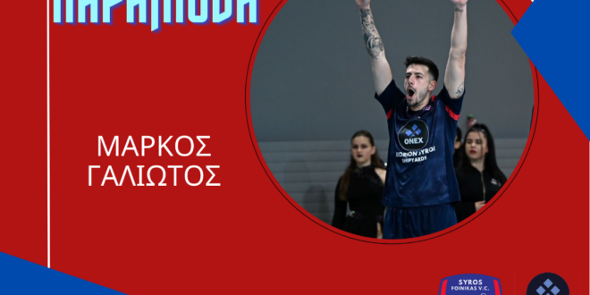 Ο Φοίνικας Σύρου ΟΝΕΧ ανακοινώνει τη συνέχιση της συνεργασίας με τον Μάρκο Γαλιώτο για τη σεζόν 2022-23. Ο διεθνής πασαδόρος είχε υπογράψει το 2021 τριετές συμβόλαιο με τον Φοίνικα, το γεγονός όμως ότι η ομάδα αναμένεται να παρουσιαστεί ιδιαιτέρως ανταγωνιστική την προσεχή σεζόν, του δίνει ακόμα μεγαλύτερο κίνητρο για καλύτερες επιδόσεις στο κυνήγι των στόχων.