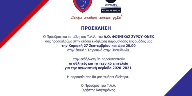Φοίνικα Σύρου ONEX: Πρόσκληση στην εκδήλωση παρουσίασης της ομάδας